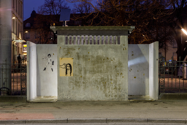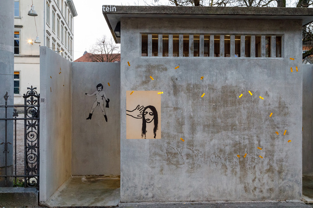 Eine Schmetterlingshaarklammer, auf dem Dach des ehemaligen Pissoirs – gelandet, vergessen, abgelegt... on my way to your pool I am your butterfly dip in pop by It’s a piscine for everyone no lifeguards in sight it belongs to Langstrasse Das Kollektiv sennhausbach lebt und arbeitet in Zürich. Linda Hauser, Liv Senn und Jacqueline Maibach haben sich während ihres ersten Modestudiums an der HGK Basel kennengelernt und sind seit 2020 als das Künstler:innen-Kollektiv «sennhausbach» tätig. In ihrer künstlerischen Praxis vereinen sie ein Spektrum an Fähigkeiten und Fachwissen, darunter bildende Kunst, Mode, Kostümbild und Kulturwissenschaft. Ein zentraler Fokus ihrer Arbeit liegt insbesondere auf der Untersuchung von Blickregimen auf Körper und deren Inszenierungen sowie deren Kontextualisierung. Sennhausbach arbeitet primär installativ und entwickelt ortspezifische Werke. Sie waren unter anderem zu sehen im FOMO Art Space, Museum für Gestaltung Zürich, TWINGI 24, Museum Tinguely BANG BANG–Soziale Eleganz, Basel, Postremise Chur und im Schauspielhaus Zürich. fontein, Langstrasse 30, beim Kanzleiareal, 8004 Zürich | ![]() | |