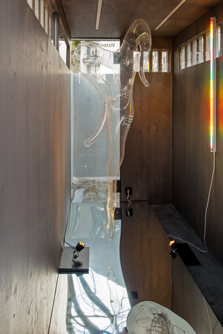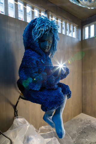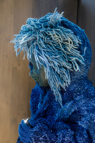 In der schlaflosen Stunde, wenn die Dunkelheit sich schwer auf die Brust legt und der Körper den Schlaf zu entziehen scheint, entfaltet sich eine seltsame Leere. Gedanken beginnen, sich unaufhörlich zu drehen, zerren an den Erinnerungen des Tages und vermischen sich mit den Ängsten vor dem, was kommen könnte. Es ist ein Moment des Innehaltens, in dem Erschöpfung und Nervosität aufeinandertreffen und sich ein Gefühl von Endlosigkeit ausbreitet – der Schlaf bleibt fern und die Gedanken nehmen Gestalt an. Die Skulptur – der blaue Zwerg – ist das Symbol dieser inneren Zerrissenheit. Entstanden in Gedanken an Füsslis «Nachtmahr» und der kraftvollen Unmittelbarkeit von Kiki Smiths «Wolf Girl», trägt die Figur eine rohe, aber auch verletzliche Präsenz. Der Zwerg sitzt in der Ecke des Raumes, seine Taschenlampe strahlt auf eine drehende Discokugel der eigenen Reflexion. Es ist Nacht, doch die Dunkelheit ist mehr als nur Abwesenheit von Licht – sie ist eine Form von Nähe, die uns in ihren Bann zieht. Wie ein Wesen aus einer anderen, unerforschten Welt, scheinen die Konturen des Zwerges den Raum zu beherrschen. In dieser fast surrealen Stille wird der Zustand zwischen Wachsein und Schlafen, zwischen dem Bewussten und dem Unbewussten greifbar. Der Zwerg ist ein stummer Begleiter, der uns daran erinnert, dass wir uns nie ganz aus der Dunkelheit lösen können – sie haftet in uns. | ![]() | |